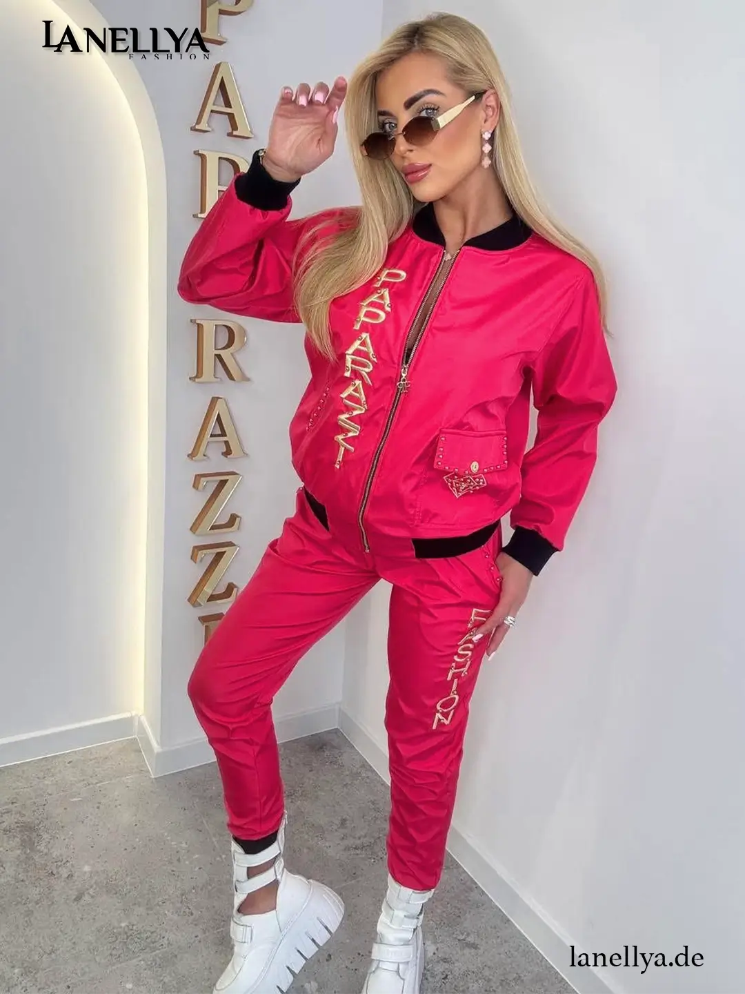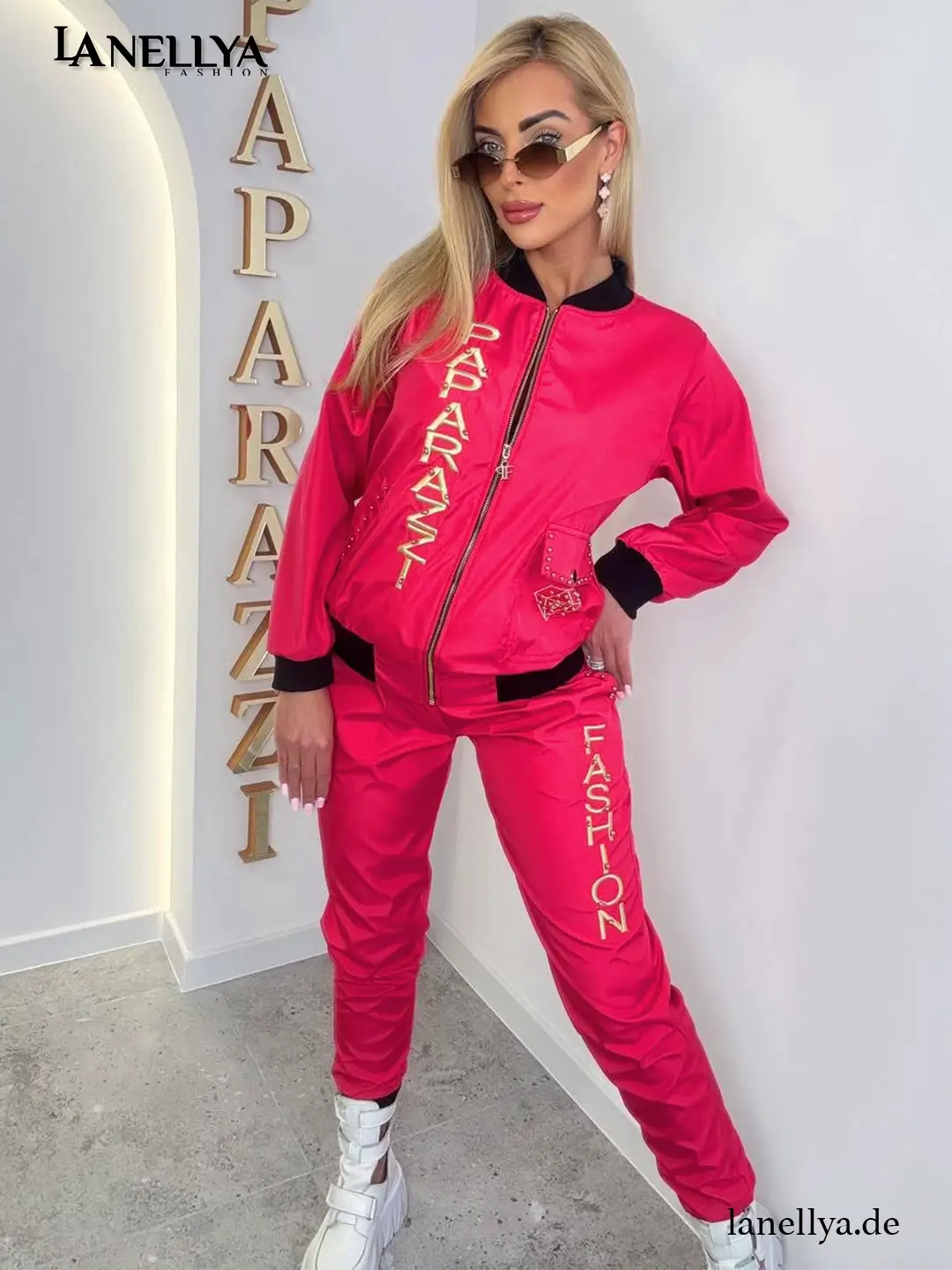 Paparazzi Damen Komplett Set – Pinker Zweiteiler mit Gold-Details